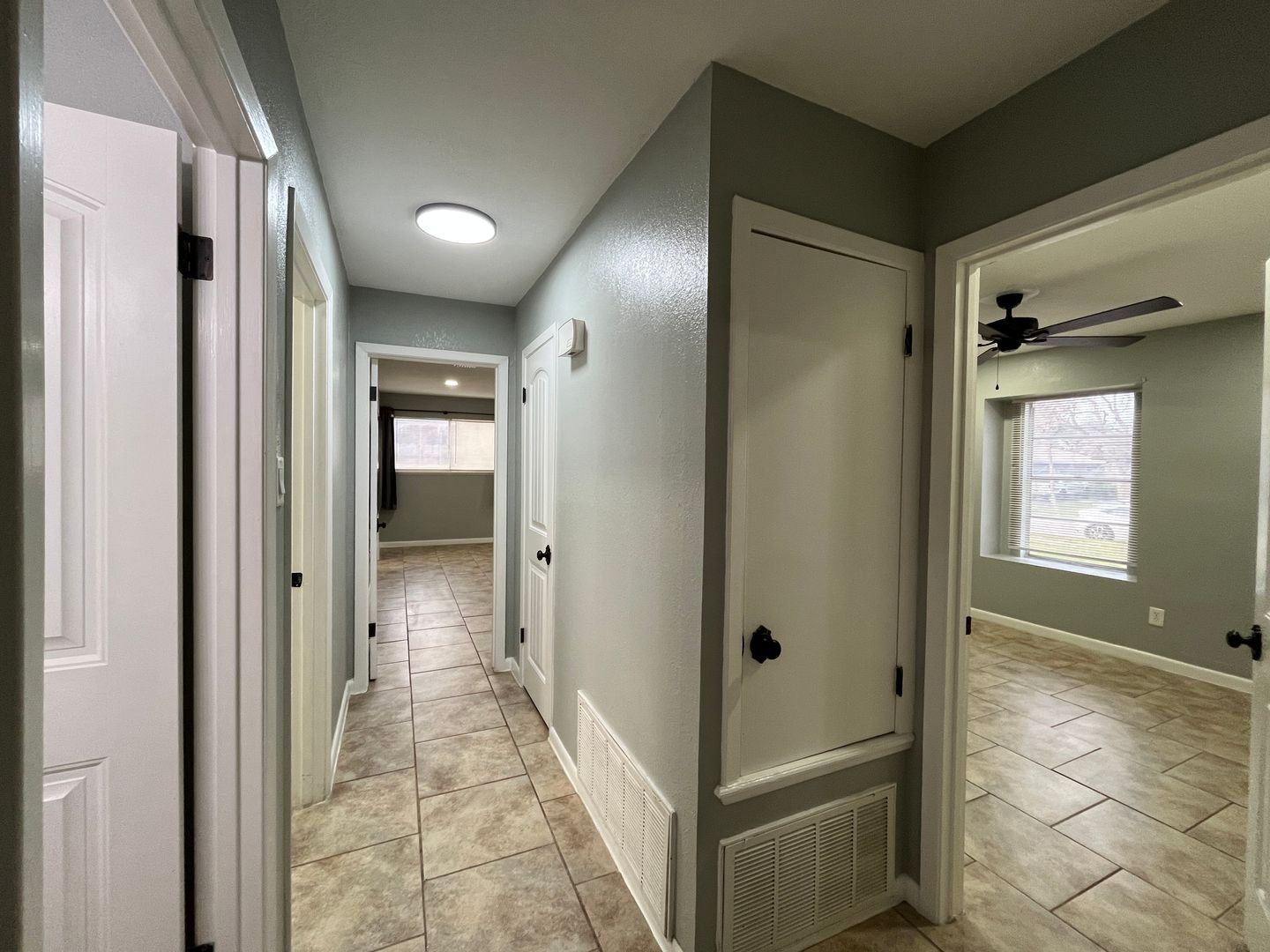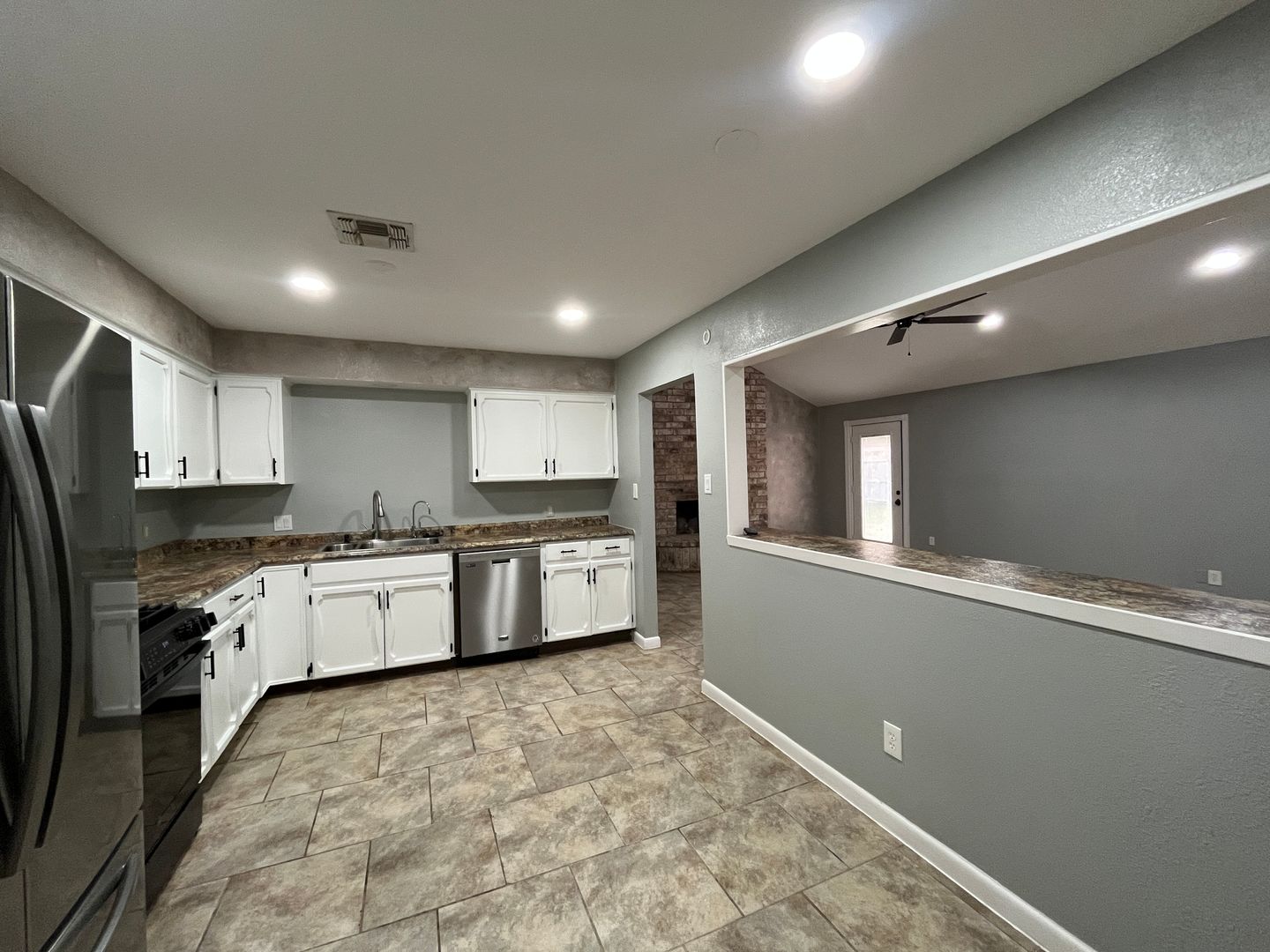 Updated three bedroom two bath home with a bonus room in Country Club Estates. Fresh paint and tile throughout! Your front door opens up to an open concept floorplan with dedicated dining room that opens up to the spacious living room with vaulted beamed ceiling and floor to ceiling decorative fireplace. Kitchen overlooks the living room and boasts lots of cabinet and countertop space plus a pantry, five burner gas range, over the range microwave, stainless steel dishwasher, and an eat in breakfast bar. This home is great for entertaining guests! Bonus room off the living room with exposed brick would make a great craft room, office, home gym, reading nook, etc. Laundry room just off the kitchen that leads to the spacious two car garage. First bedroom on the right overlooks the front yard offers a built in desk. Across the hallway you will find a hollywood bath that leads to another bedroom facing the backyard with a walk in closet. At the end of the hallway you will find the primary suite with two closets, walk in shower, double sinks, and a separate w.c. closet for extra privacy. All bedrooms with ceiling fans for air circulation. Quick commute to crosstown south, grocery, shopping, retail, restaurants, parks, walking trail, etc. call a Realtor today to schedule a showing!