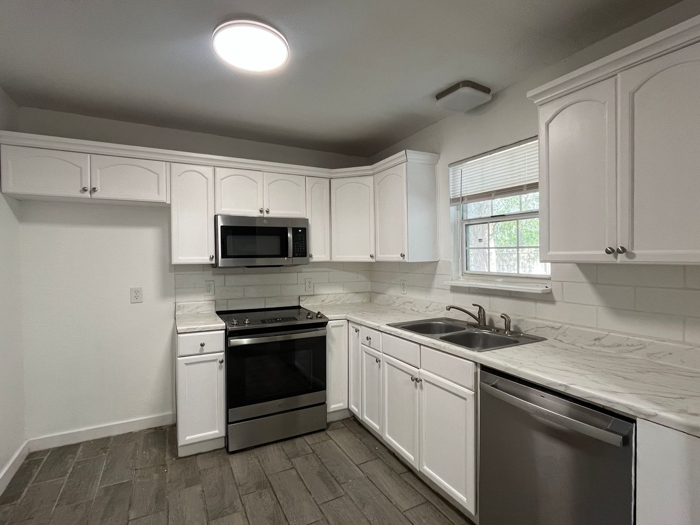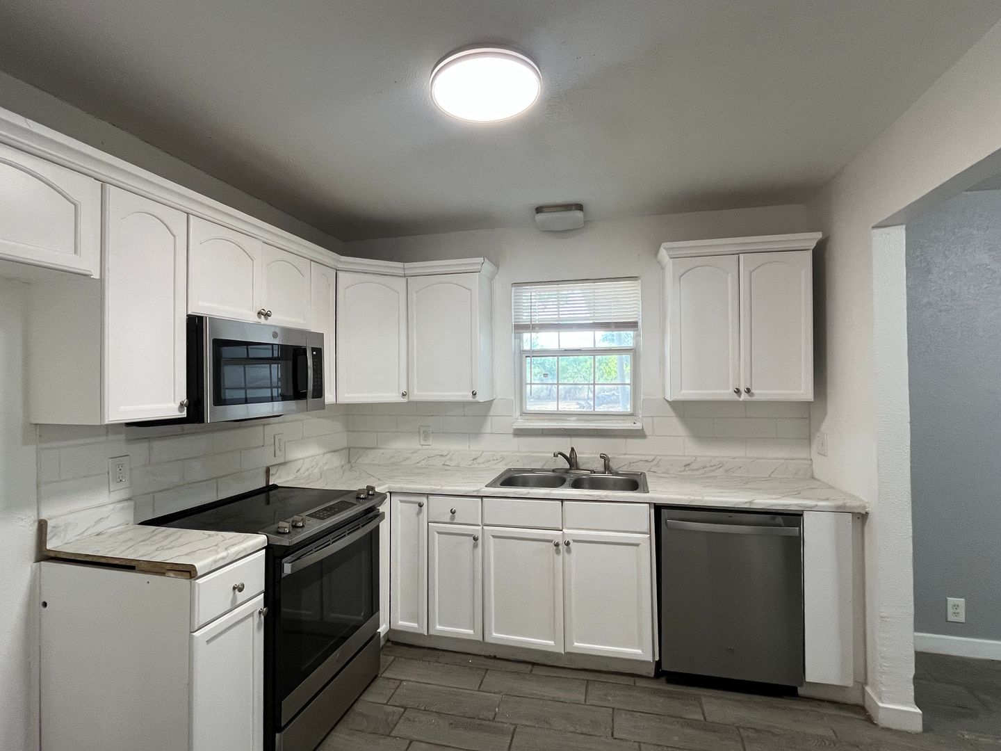 Four Bedroom Two Bath home with a one car garage in Award Winning Calallen School District. Open concept floorplan with split bedrooms. Faux wood tile throughout, no carpet and easy to maintain. Front door opens up to the living room, leads you into the dining and circles back through the kitchen with stainless steel appliances and double basin sink. One car garage access with washer and dryer connections from dining and living room. Primary suite just off the dining room is tucked away in the back of the house and boasts tiled stand up shower and separate exterior entrance. Three other bedrooms boast ceiling fans and windows that allow for plenty of natural light to fill the rooms. Quick commute to parks, schools, grocery, restaurants, entertainment, and so much more. Call a realtor today to schedule a showing.