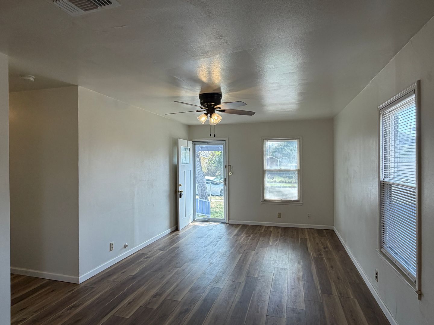 Well maintained three bedroom one bath home with fenced in front and backyard plus long driveway for extra parking. Central A/C and luxury vinyl plank throughout. Open your front door to a spacious living area that opens up to an L shaped kitchen with great countertop and cabinet space, double basin sink with glass cabinet above, gas range with vent hood, and opens up to an extra laundry area before providing access to the backyard with cement slab great for outdoor BBQing or get togethers. Bathroom boasts a tub shower combination tiled to the ceiling and extra shelf space behind the door for storage. Bedrooms with ceiling fans boast lots of windows that allow for natural light to fill the rooms. This property provides a quick commute to crosstown expressway, grocery, restaurants, shopping, and so much more. Call a Realtor today to schedule a showing. Sorry no pets allowed at this property.