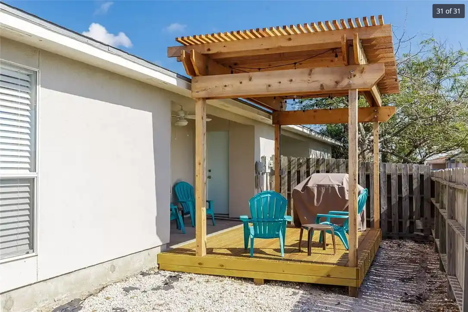 Unit B offers granite counter tops, appliances, tile flooring throughout, updated light fixtures, and outdoor pergola. Short distance to the beach and the seawall. This unit has spacious rooms, one car garage, and ample storage. Schedule a showing, this unit wont last.