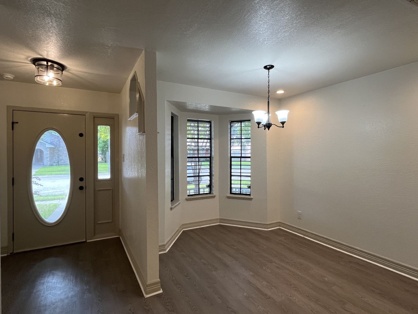 Spacious and updated three bedroom two bath home in the Crestmont Subdivision. Walk into this home and you are welcomed by a small foyer that opens up to the living room with floor to ceiling fireplace and coffered ceilings. Kitchen sits between two dining areas and features freshly painted cabinets, stainless steel appliances, and double basin sink. Primary bedroom with tub shower combination and a walk in closet is tucked away in the back of the house overlooks the fully fenced in back yard. Two bedrooms and a spacious hall bath can be found down the hall. Both bedrooms are a good size and allows for plenty of furniture. Glass stained window details throughout. Quick commute to SPID, parks, schools, restaurants, entertainment, shopping, grocery, and so much more. Call a realtor today to schedule a showing.