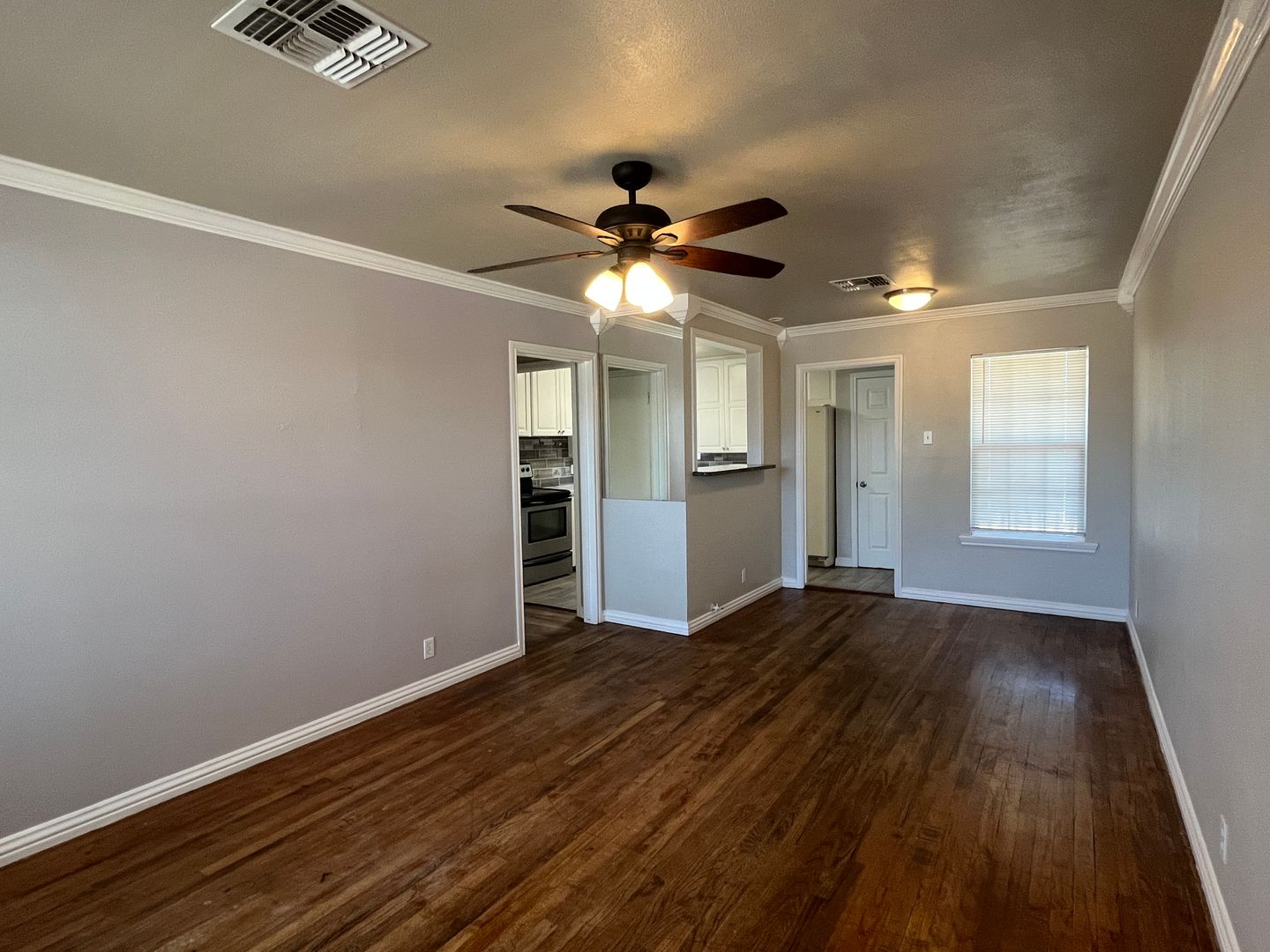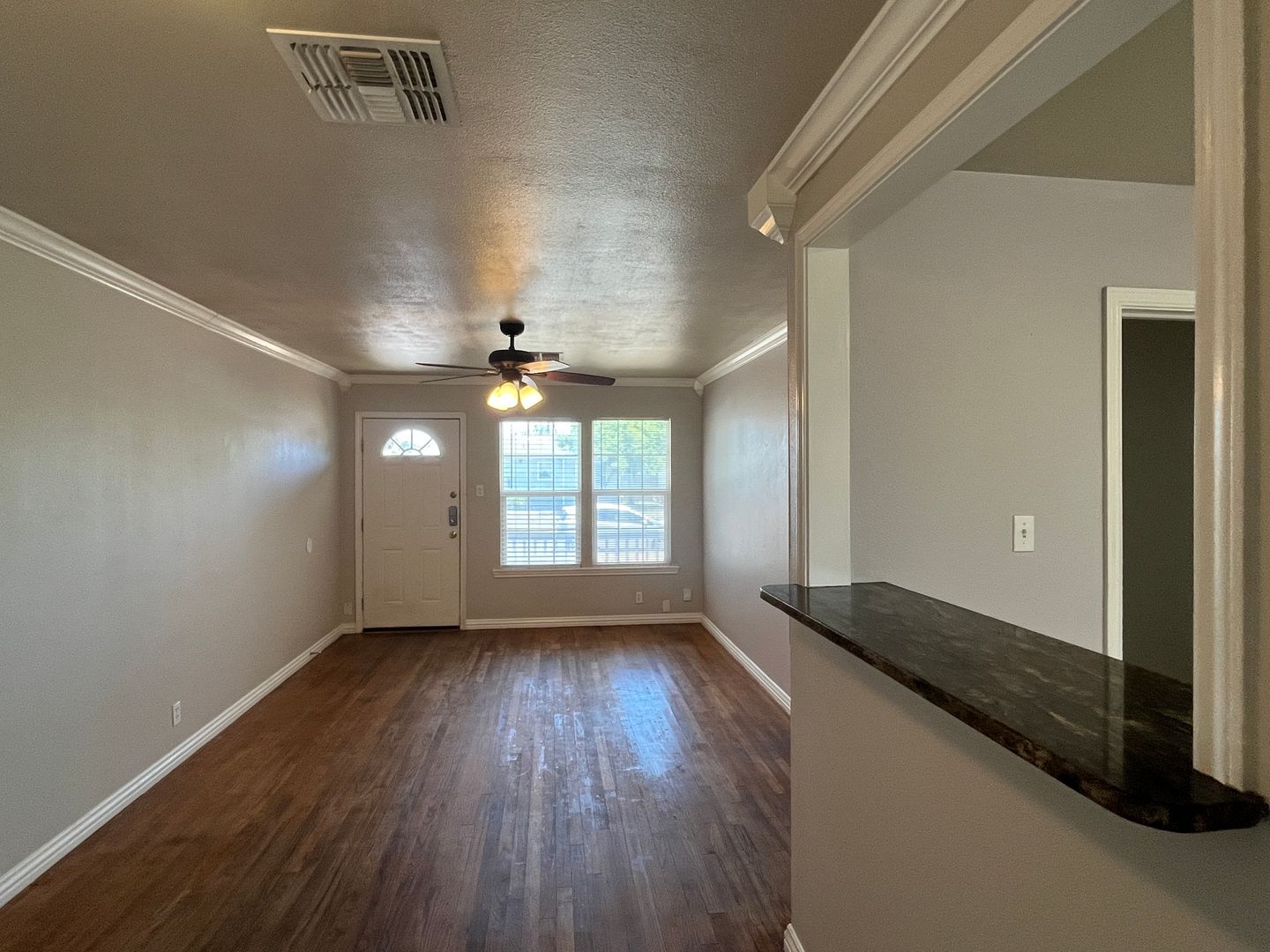 Three bedroom one bath in central city! Fresh paint and hardwood floors throughout! Front door opens up to your living and dining room and leads you into the kitchen. Kitchen features all stainless steel appliances, updated cabinet, countertops, and backsplash and overlooks the fully fenced in backyard. Hallway leads you to bedrooms and bathroom. All bedrooms boast lots of windows that allow for plenty of natural light to fill the rooms and all have ceiling fans for your convenience. Bathroom with tub shower combination is tiled to the ceiling. One car garage with garage doors at both ends. This home is located with a quick commute to SPID, shopping, restaurants, grocery, entertainment, and so much more. Call a realtor today to schedule a showing. Pets welcome with owner approval and pet deposit.