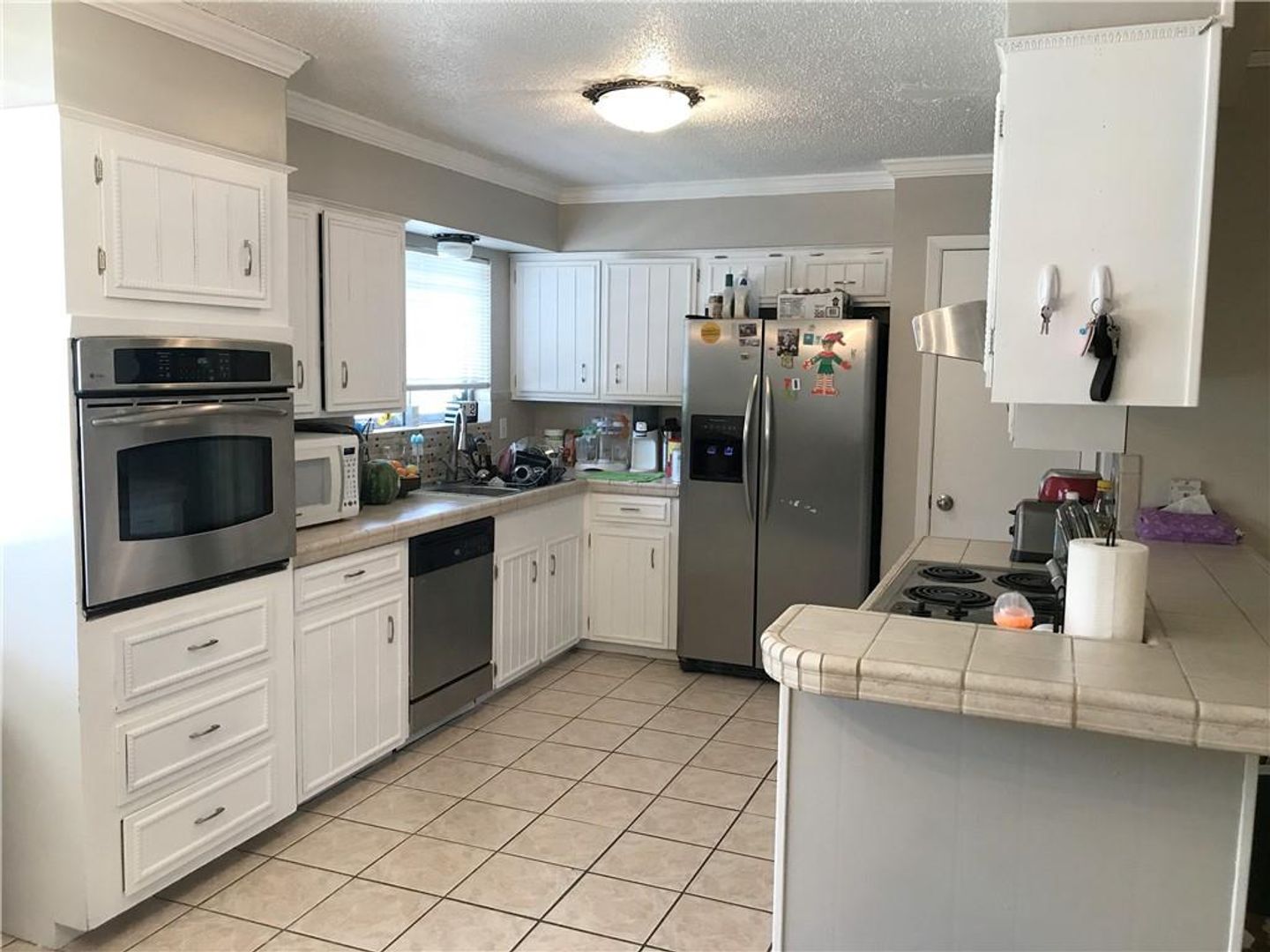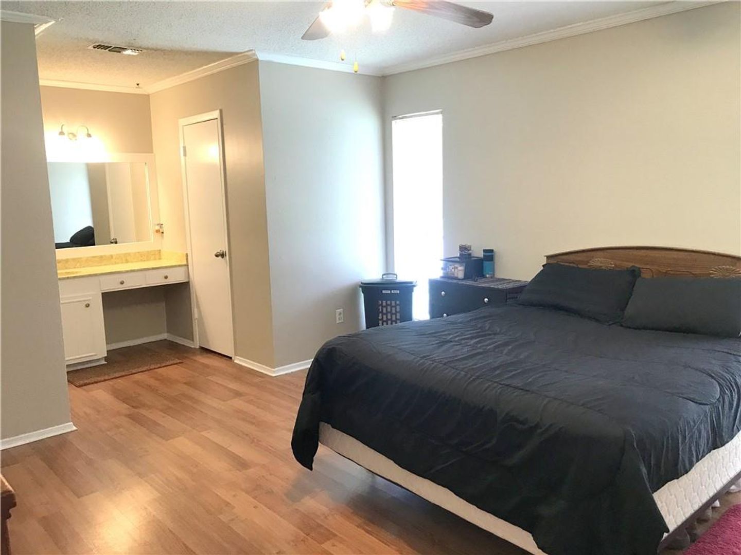 5 Bedroom 3 full bath split floorplan house on a corner lot. Garage conversion and two master suites. Extra square footage not reflected in appraisal district. Walk into a small foyer and find a sitting area to your left. Take a few steps forward and you are greeted into a spacious living room open to the dining room and kitchen. Living room features cathedral ceiling with decorative beams and provides access to ample covered patio with deck. Kitchen with fresh painted cabinets, stainless steel appliances, tiled countertops, plus eat in breakfast bar. First master off dining room with open vanity and separate room for toilet and shower plus walk in closet. Second master with soaking tub, stand up shower, and access to covered patio. Three bedrooms on the other side of the house share a spacious bathroom with double sinks and a tub shower combination. All bedrooms boast windows that allow for plenty of natural light to fill the rooms. One small pet under 25 lbs with owner approval.