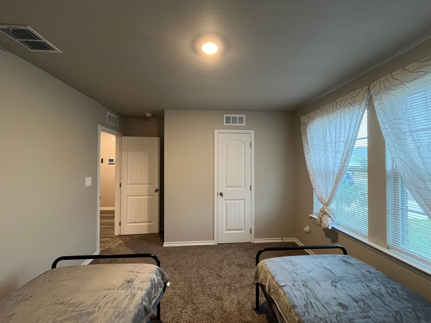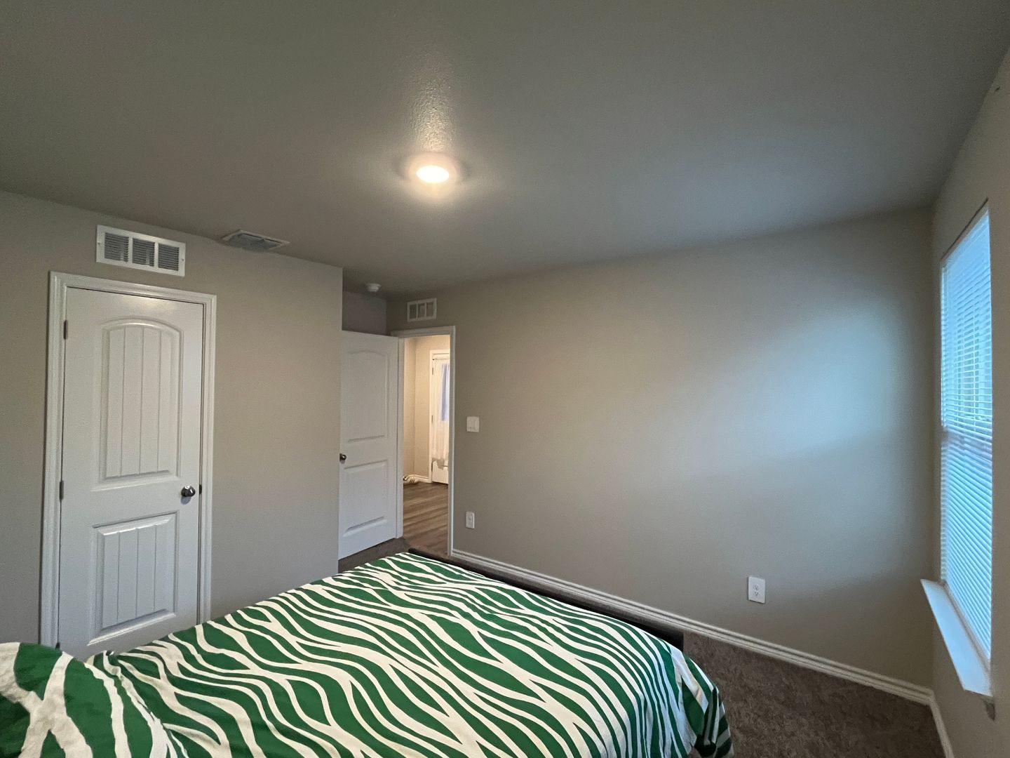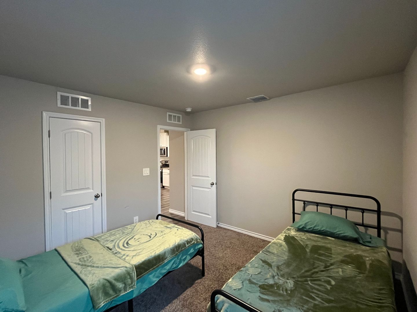 Spacious four bedroom two bath house with split bedroom floorplan in Starlight Estates on the South Side. Granite countertops and luxury vinyl plank throughout. Carpet in the bedrooms. Walk into a small foyer that leads you into the kitchen with lots of countertop and cabinet space, five burner gas range, island with double basin sink and eat in breakfast bar, plus a separate pantry! Living room off the kitchen boasts lots of windows that allow for plenty of natural light to fill the rooms and provides access to the covered patio and fully fenced in backyard. Two bedrooms up front correspond to a hall bath with open shelving and tub shower combination. Third bedroom off the kitchen. Primary bedroom tucked away in the back of the house with plenty of room for large furniture boasts a walk in shower, double sinks, separate w.c. closet, and large walk in closet. Quick commute to schools, Bill Witt City Park, shopping, restaurants, grocery, and so much more! Call a Realtor today to schedule a showing.