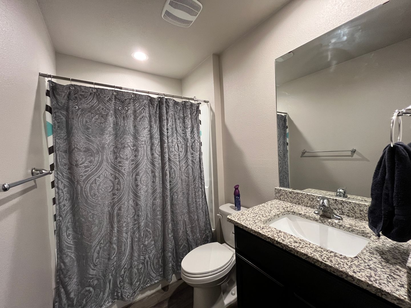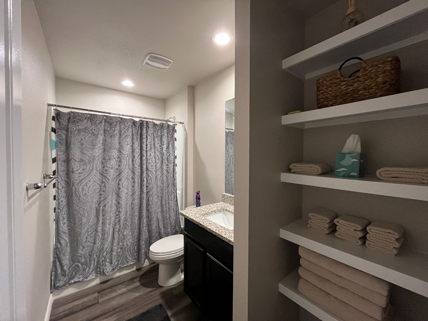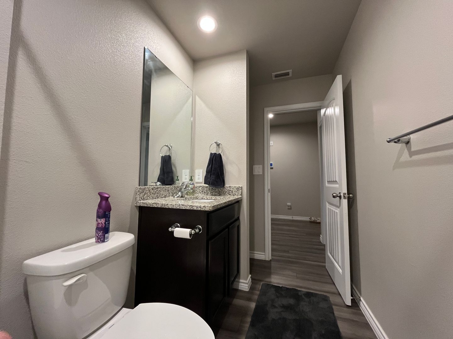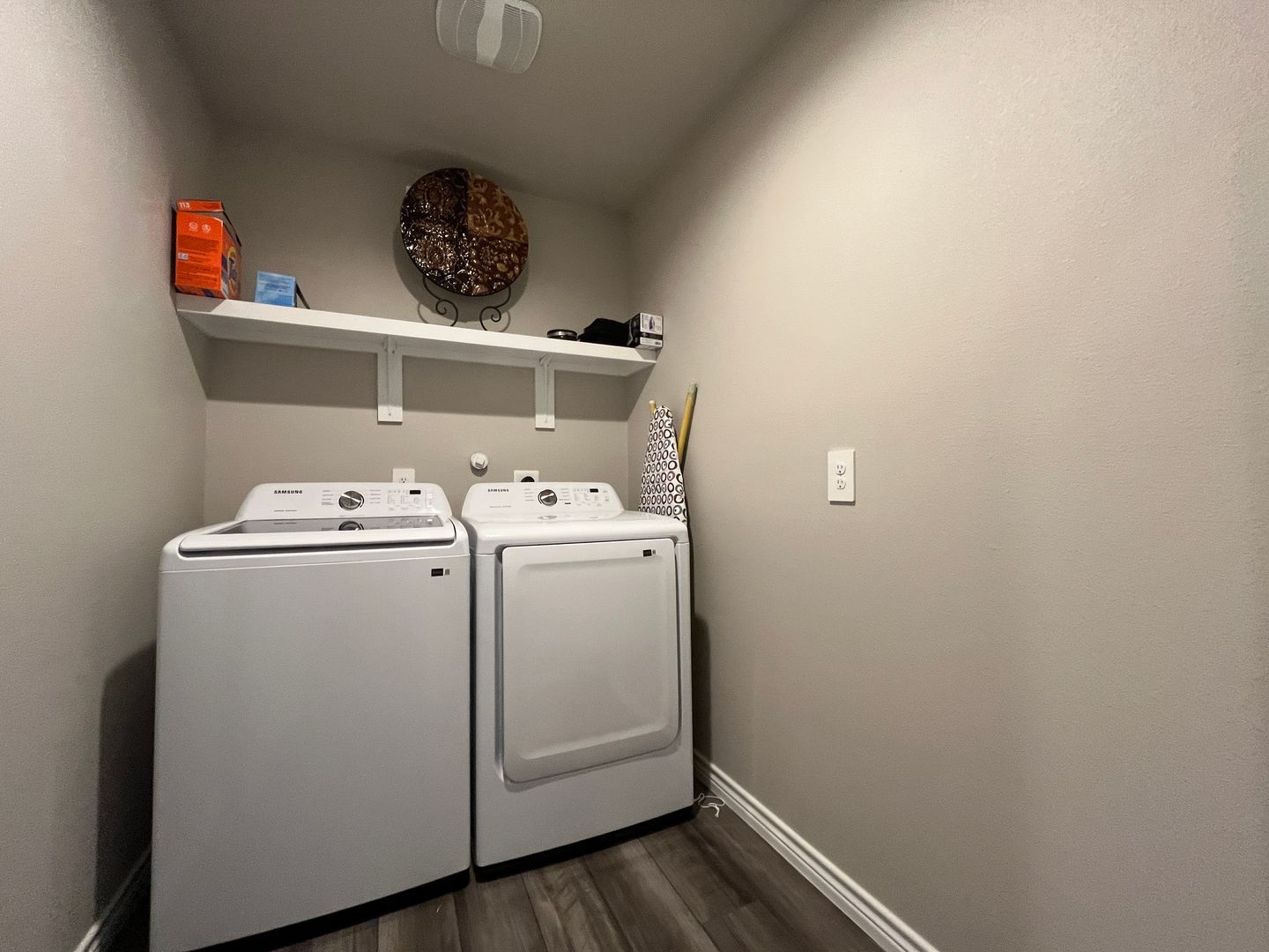 Spacious four bedroom two bath house with split bedroom floorplan in Starlight Estates on the South Side. Granite countertops and luxury vinyl plank throughout. Carpet in the bedrooms. Walk into a small foyer that leads you into the kitchen with lots of countertop and cabinet space, five burner gas range, island with double basin sink and eat in breakfast bar, plus a separate pantry! Living room off the kitchen boasts lots of windows that allow for plenty of natural light to fill the rooms and provides access to the covered patio and fully fenced in backyard. Two bedrooms up front correspond to a hall bath with open shelving and tub shower combination. Third bedroom off the kitchen. Primary bedroom tucked away in the back of the house with plenty of room for large furniture boasts a walk in shower, double sinks, separate w.c. closet, and large walk in closet. Quick commute to schools, Bill Witt City Park, shopping, restaurants, grocery, and so much more! Call a Realtor today to schedule a showing.