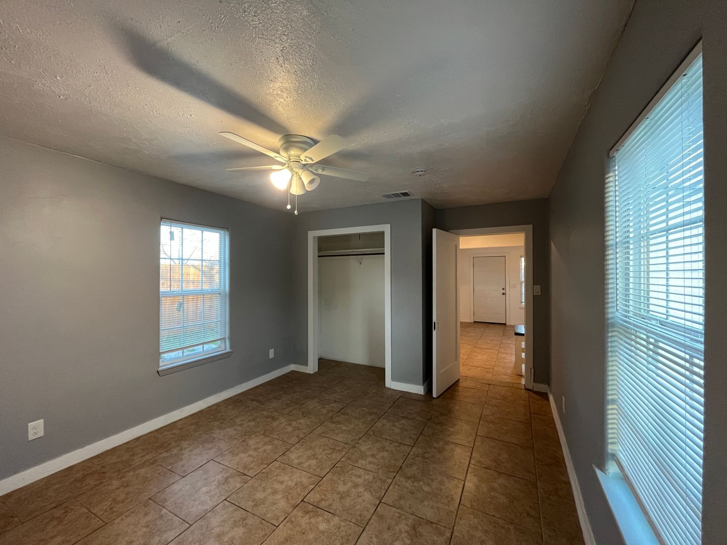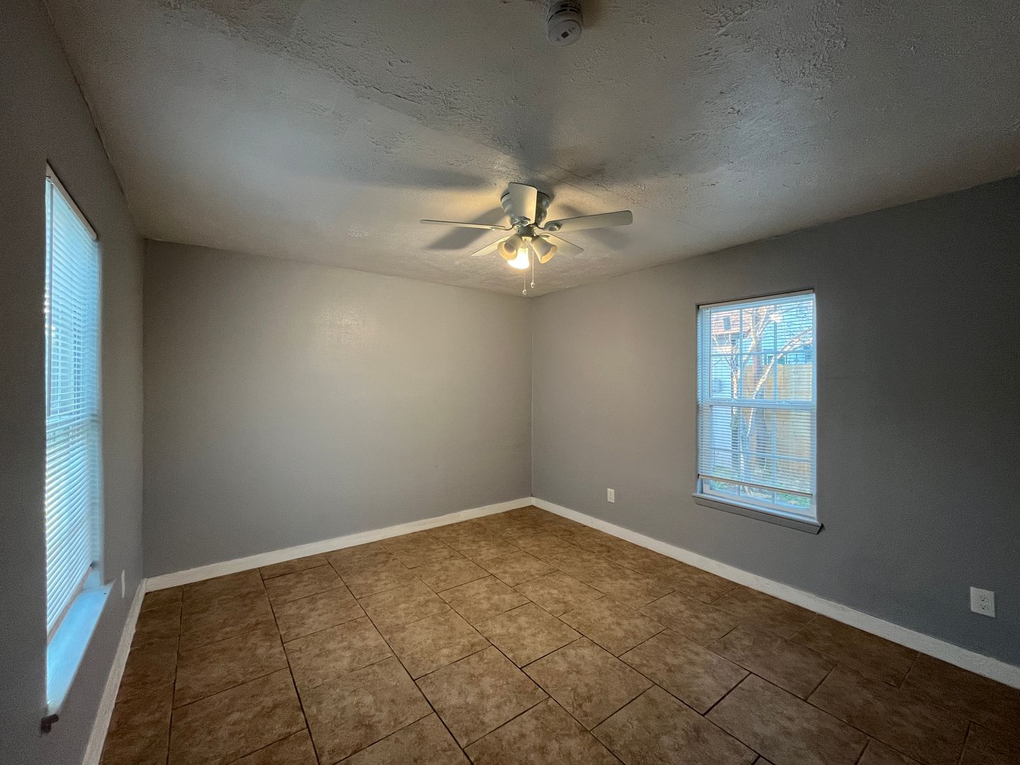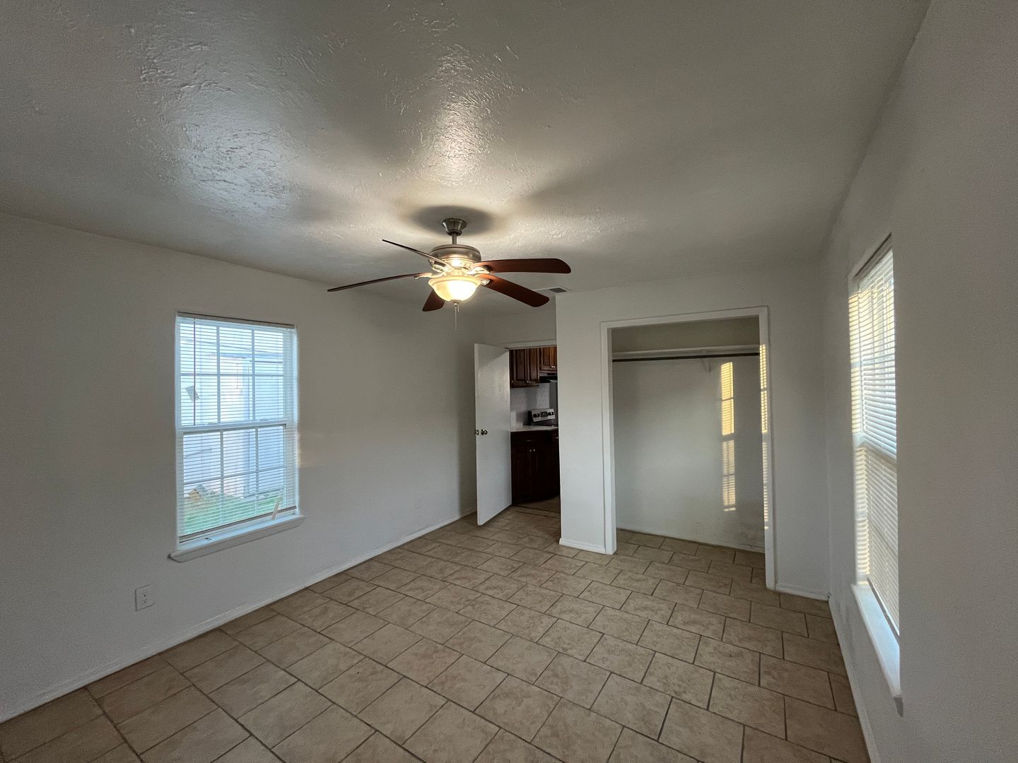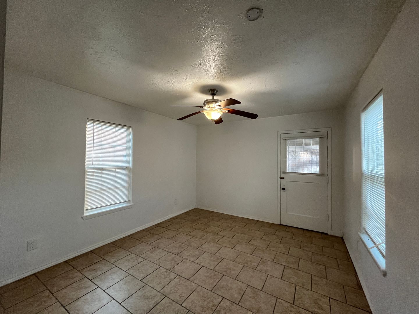 Two bedroom one bath house with WATER AND ELECTRICITY INCLUDED. Tiled throughout! Open your front door to a spacious living and dining room with lots of windows that allow for plenty of natural light to fill the room. Kitchen boasts stainless steel appliances and a double basin sink. Large bathroom with walk in shower leads to laundry area. Split floorplan with both bedrooms tucked away in the back of the house boast ceiling fans and one bedroom provides access to covered patio and fully fenced in backyard.